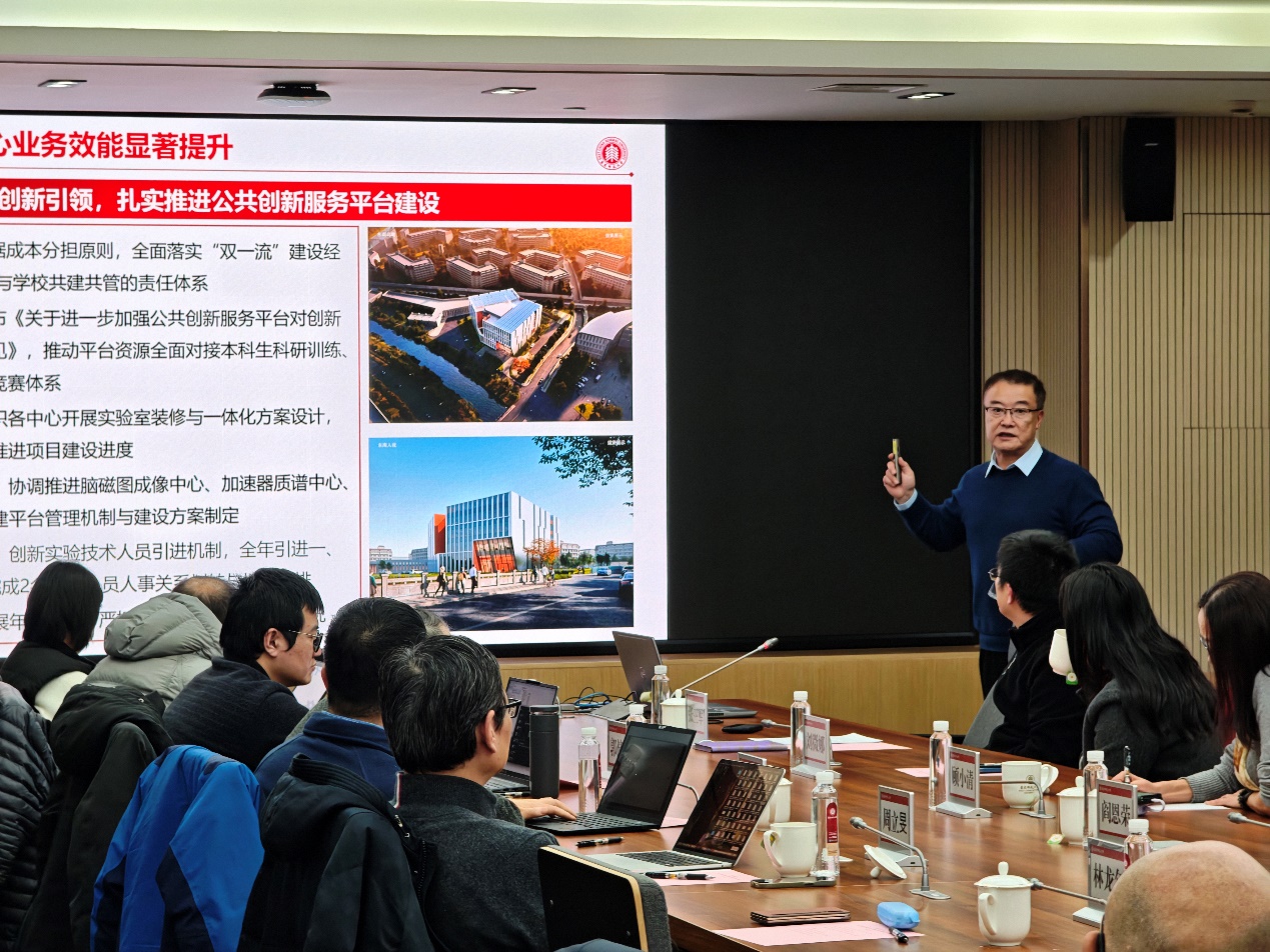 会议最后,校党委常委、副校长施国跃对实验室与装备处及实验室建设管理委员会2025年度的工作成效给予高度评价,向全体委员的辛勤付出致以诚挚感谢。他充分肯定了装备处近几年在争取贴息贷款、大仪开放共享连续评优、制度建设与服务保障等方面取得的显著成绩。施国跃指出,在国家强调科技创新的背景下,装备处应向“服务型”与“研究型”并重的职能部门转型。围绕新阶段实验室工作的使命与任务,他提出三方面要求:一是提升现有设备效能与前瞻规划,用好加速器质谱、脑磁图等大型仪器,强调跨学科高效利用;要结合公共创新实验大楼建设做好仪器布局规划,对接学校“十五五”学科发展需求,针对不同资金来源设备实施分类精细化管理,建立使用效益评估机制并与后续资金支持挂钩。二是拓展外部资源,积极争取国家和地方资金支持,深化与市区政府及企业合作,响应上海市“校企联合”创新体新政,同时主动对接文科需求,探索文理工交叉领域实验室建设。三是坚持开放思路、协同发展,联合科技、国资等部门做好大装备、大系统五年规划,构建“研究-研制-产业落地”链条,实现产教融合与可持续发展。